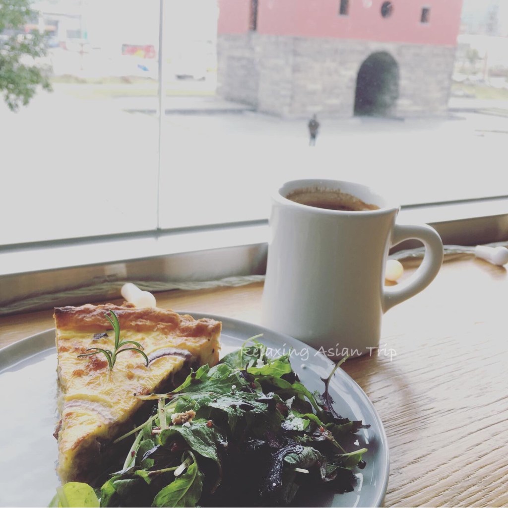 チキンのキッシュとコーヒーを注文、2階でいただきました。待っていたら店員さんが上まで運んできてくれます。