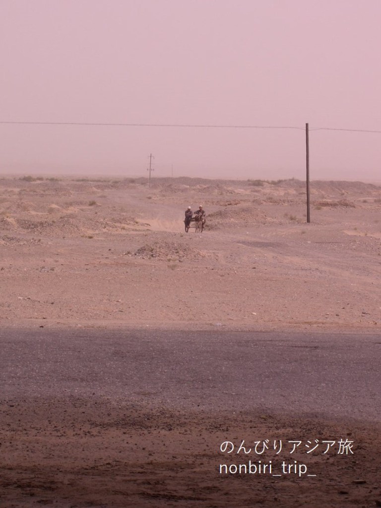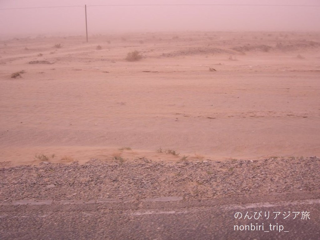 特に沙漠公路では、砂漠を突っ切る道があるだけだから、道を向いて立つと背後には誰もいない(はず。誰かいるとしたらさまよう旅人、あるいはその亡霊であろう)。したがって、用を足す際には、道を向いてしゃがみ、自分の前に傘を広げて自分の姿を隠せばいいのだ。そういうふうにしゃがんている人がいたらそれはトイレ中なので、誰も敢えて後ろに回ろうとはしないだろう。ただし女性の単独行は危ないかもしれないので、団体旅行のときに試してみてください。